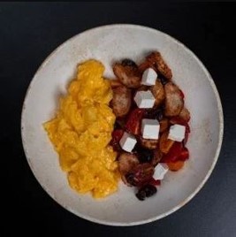 Taze çiftlik yumurtası, cheddar peyniri, soğan ve 3 peynir karışımından oluşan nefis peynir soslu kıymalı lezzet.