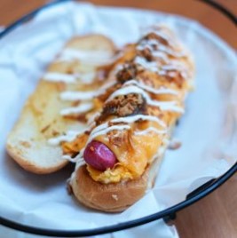 Ev yapımı salçalı özel sos, taze çiftlik yumurtası, cheddar peyniri ve 3 peynir karışımından oluşan nefis peynir soslu dana baconlu orijinal lezzet. Patates cipsi eşliğinde servis edilir.