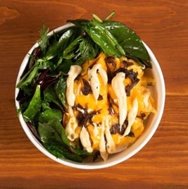 Mevsiminde toplanılan Akdeniz yeşillikleri, taze çiftlik yumurtası, cheddar peyniri, soğan kıtırı ile orijinal soslu lezzet.