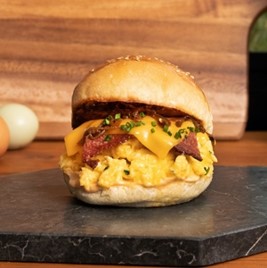 Yumuşacık enfes Fransız brioche ekmeğiyle; taze çiftlik yumurtası, dana bacon, cheddar peyniri, kıtır soğan, orijinal sosu ve karamelize soğanı ile dayanılmaz lezzet. Patates cipsi eşliğinde servis edilir.